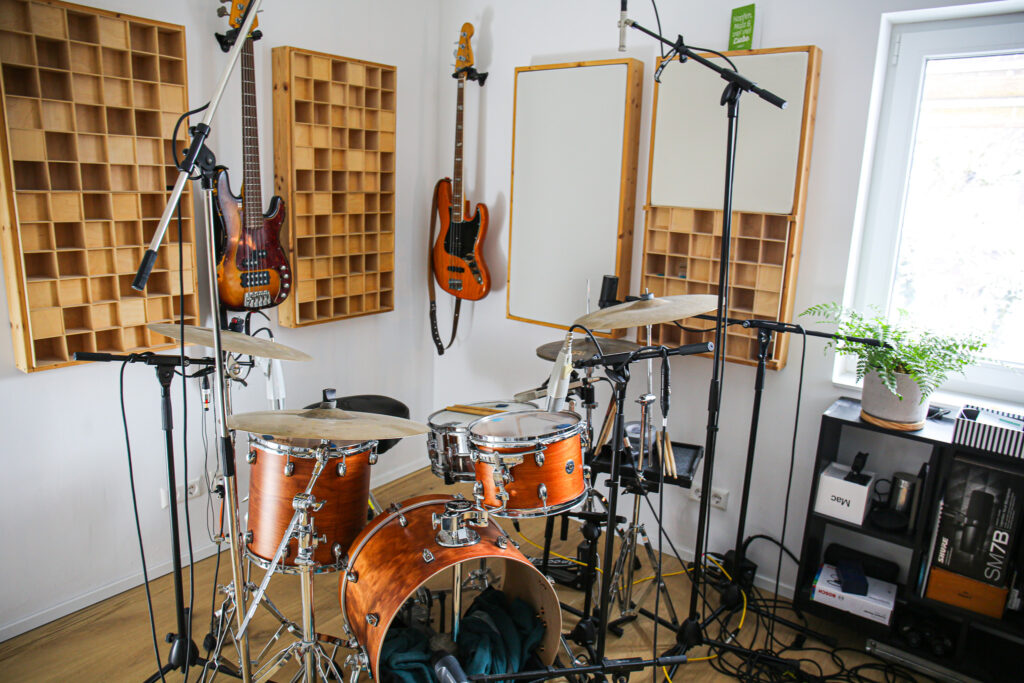 Das Studio ist durch akustische Elemente in einer Raum-in-Raum-Konstruktion optimal abgestimmt um Signale in ein ausgewogenes Klangverhältnis zu setzen.